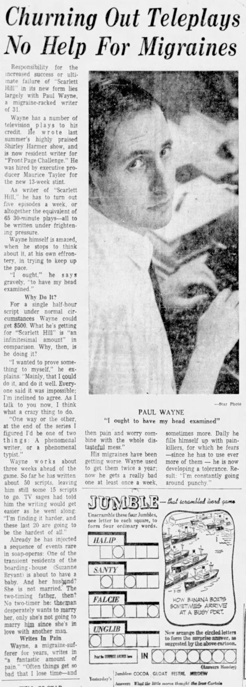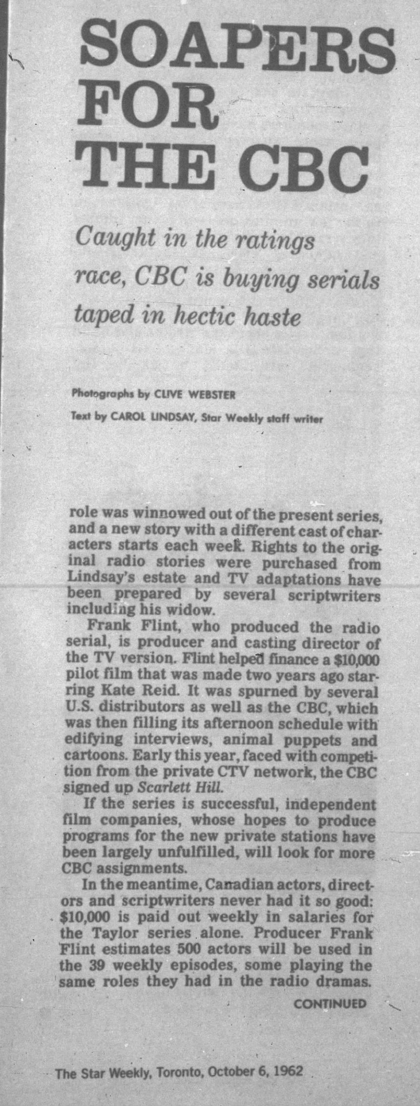 4. Yes, that's what I've found too. This document lists the titles of the scripts. I've found synopses and cast for most of them that I'm typing up for @slick jones . There appear to be kinescopes of the episodes available to view at the Library and Archives Canada. https://data2.archives.ca/pdf/pdf001/p000000644.pdf
