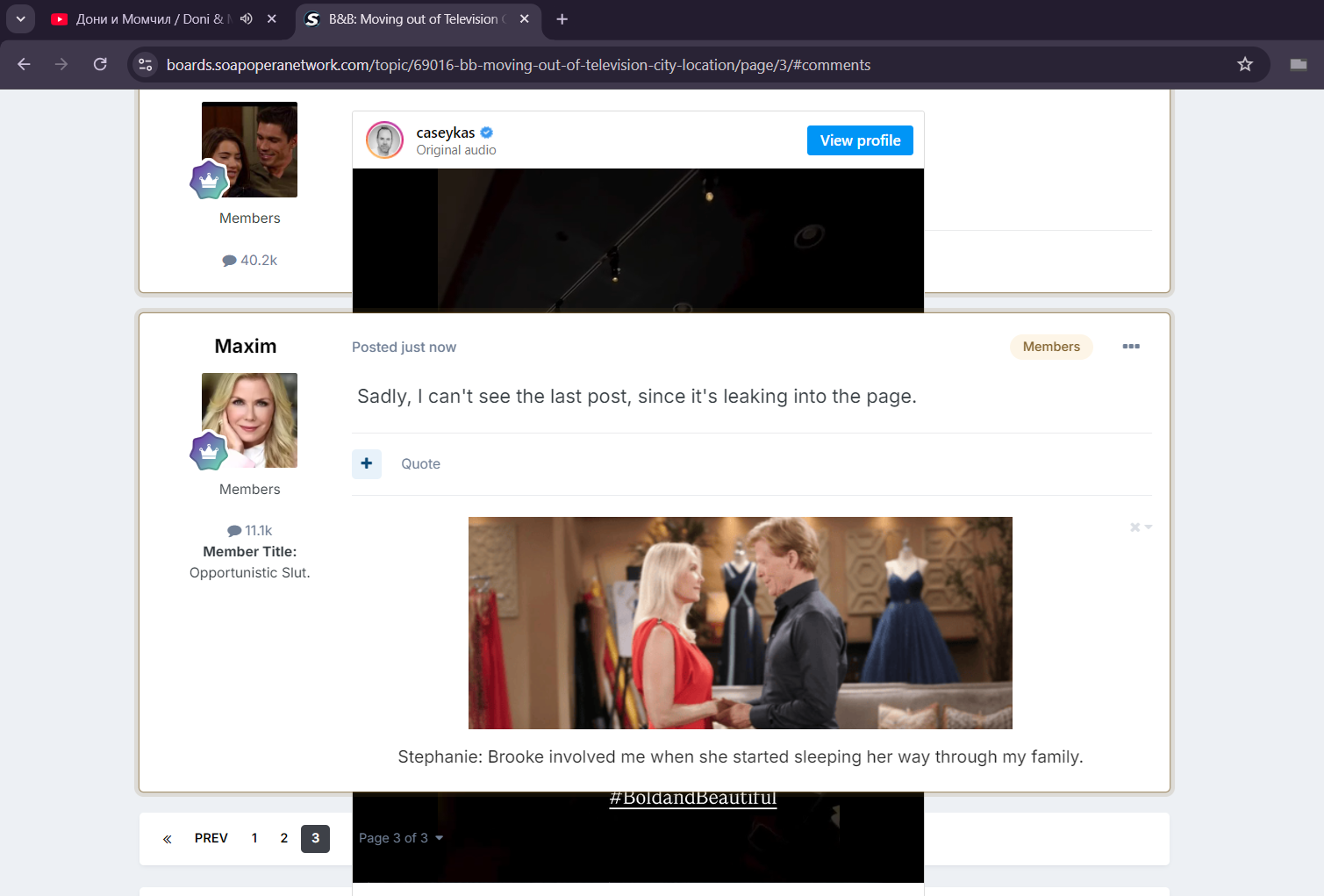 Absolutely... His Thomas Ripley meets Disney villain-act is just tiring at this point. It stopped being interesting half a year ago. And together with Tina aka the wannabe Bonnie and Clyde... they just don't work for me. I love the writing on the show, but some of the characters are clearly not thought-out in terms of vision. It seems like the writer is trying to build them up, find who they are... but is not succeeding. The saving grace is that... we have so much amazing stuff that all of the flops pale in comparison. It's literally 90 percent great and 10 perfect mess. Which is completely normal. OLTL 1992 continues to be one of the strongest soaps I've seen in my life. In some aspects, it gets better and better. I have currently seized watching anything else, because the other soaps can't compare with the style of writing and overall quality that I'm getting accustomed to. I can't play Bold after watching these episodes... OLTL 1992 really spoils you and makes you crave more and more quality storytelling. I have no idea how I'll be able to continue my classic Bold 2004 re-watch after this.