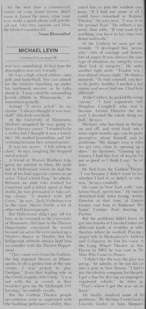 I'm not sure what the difference was between 1973's “Me “ listed as a movie and the paragraph saying “Me” was a PBS show that kept her from taking the role in 1975.