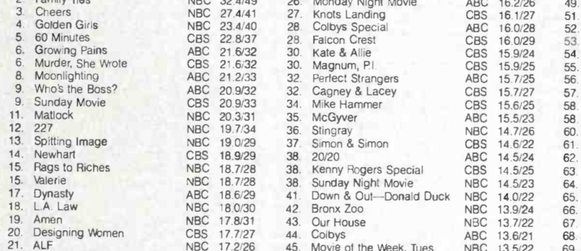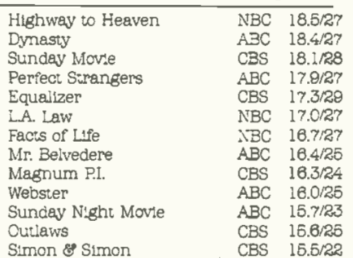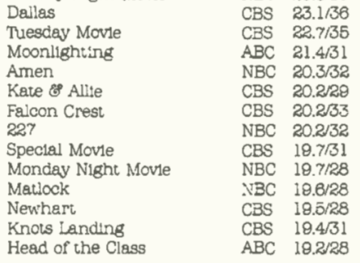 1985/86: 6. Dallas, 7. Dynasty, 17. Knots Landing, 24. Falcon Crest. The season primetime soaps started tanking.