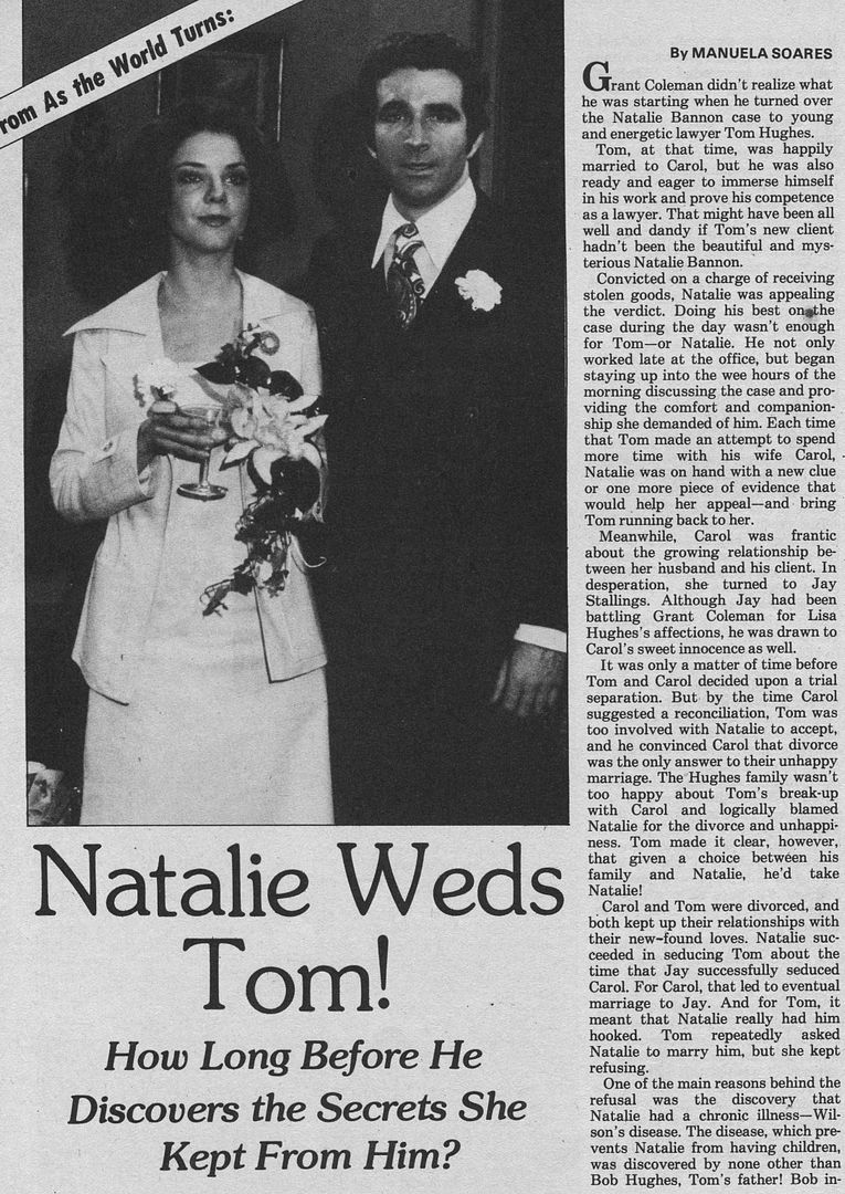 LOL..I think that Tom is hot...Natalie would have been a great character to bring back by Marland...instead of boring Taylor the plain vixen going after him...too bad that the Dobson's screwed her up with that recast.