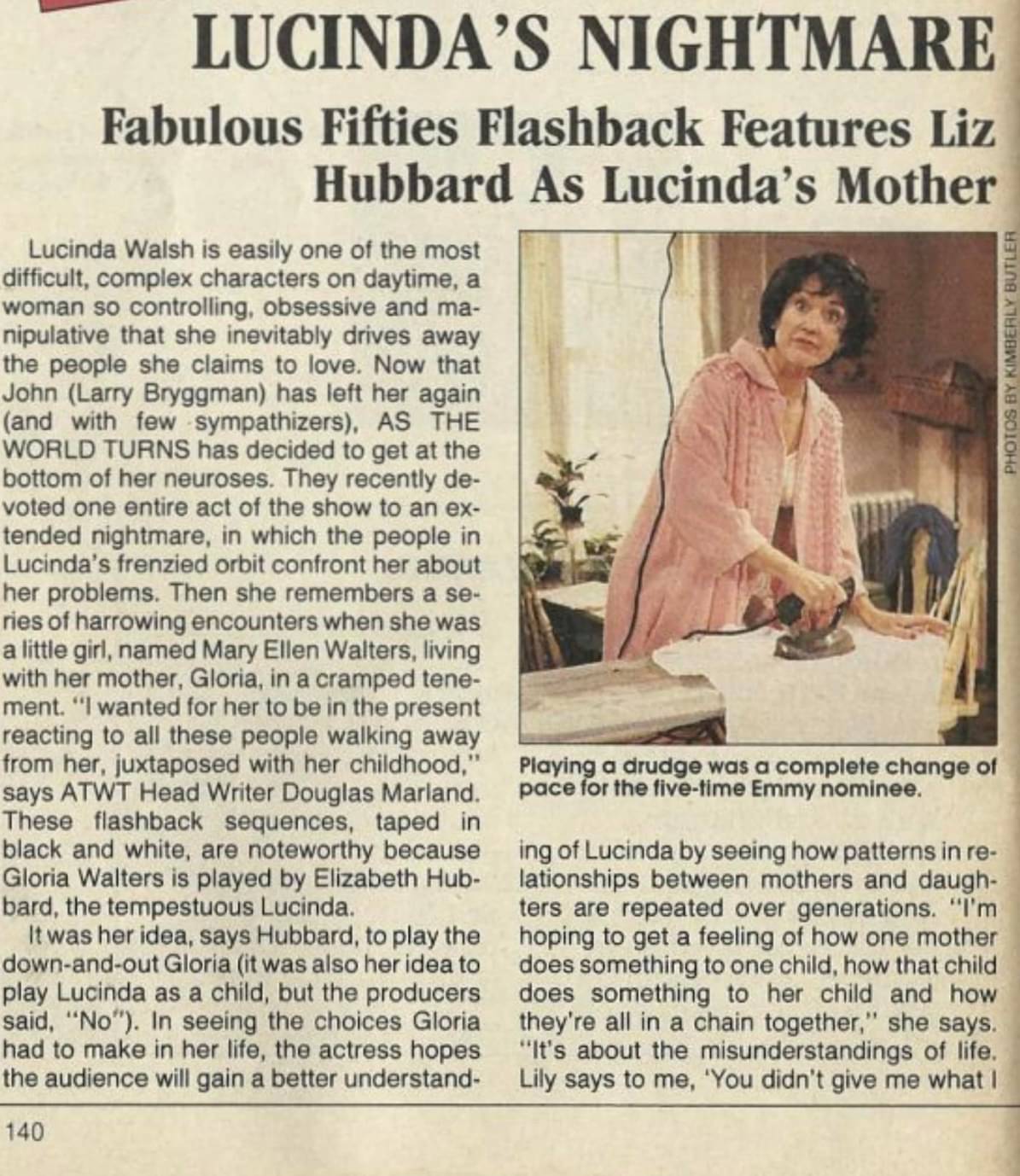 The idea of Liz playing her teenage self is a bit much, although Susan Lucci did a year later and this seemed to be accepted.