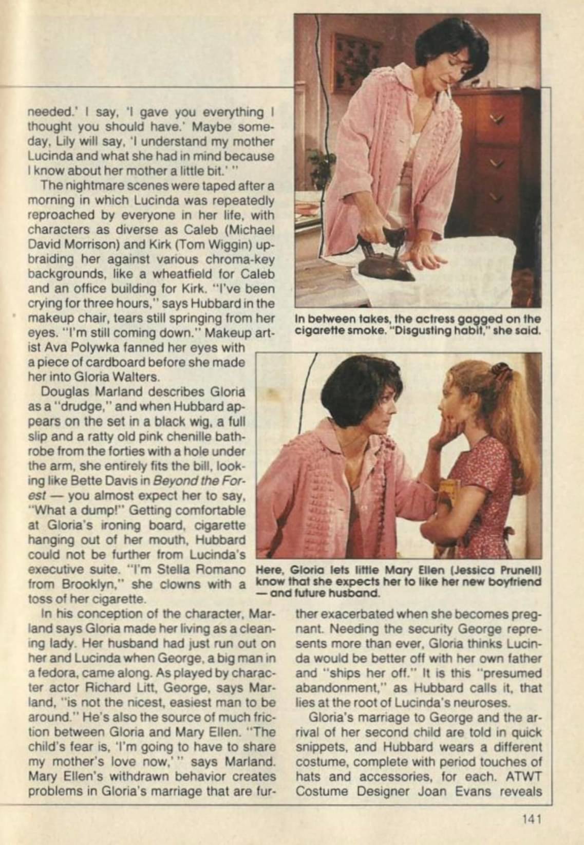 I think Althea proved Hubbard could act and play a character unlike herself... while I viewed Lucinda as an extension of Hubbard.. especially as time went on.