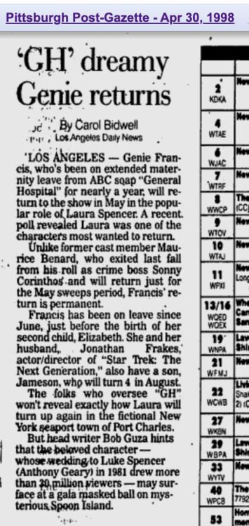 I can get behind TG not wanting to play the same Luke and Laura dynamics. But to have that be so ingrained that they can’t even have Genie on the show was ridiculous. And I know that was JFP too, not just Tony.