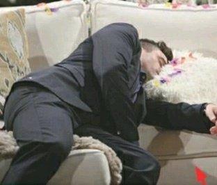 And here is a pic of Cane looking like he's passed out. I think this happens after Devon's New Year's Eve bash when Devon sees Cane drinking. This will happen before Cane/Victoria kiss.