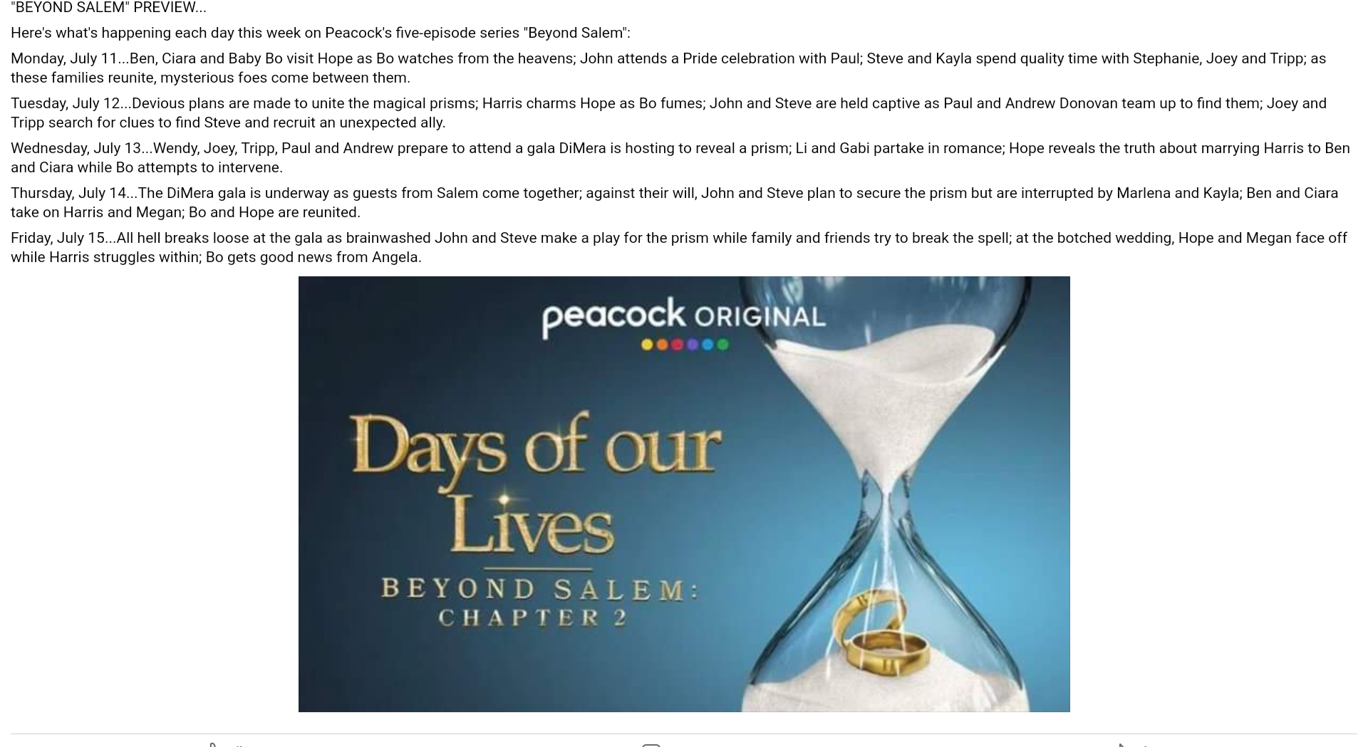 Wow, early morning droppage! Thnx for the Early Warning System. And, I love your switching it to Salem Beyond instead of Beyond Salem. I like your way better! Their way I keep listening for Beyonce'!